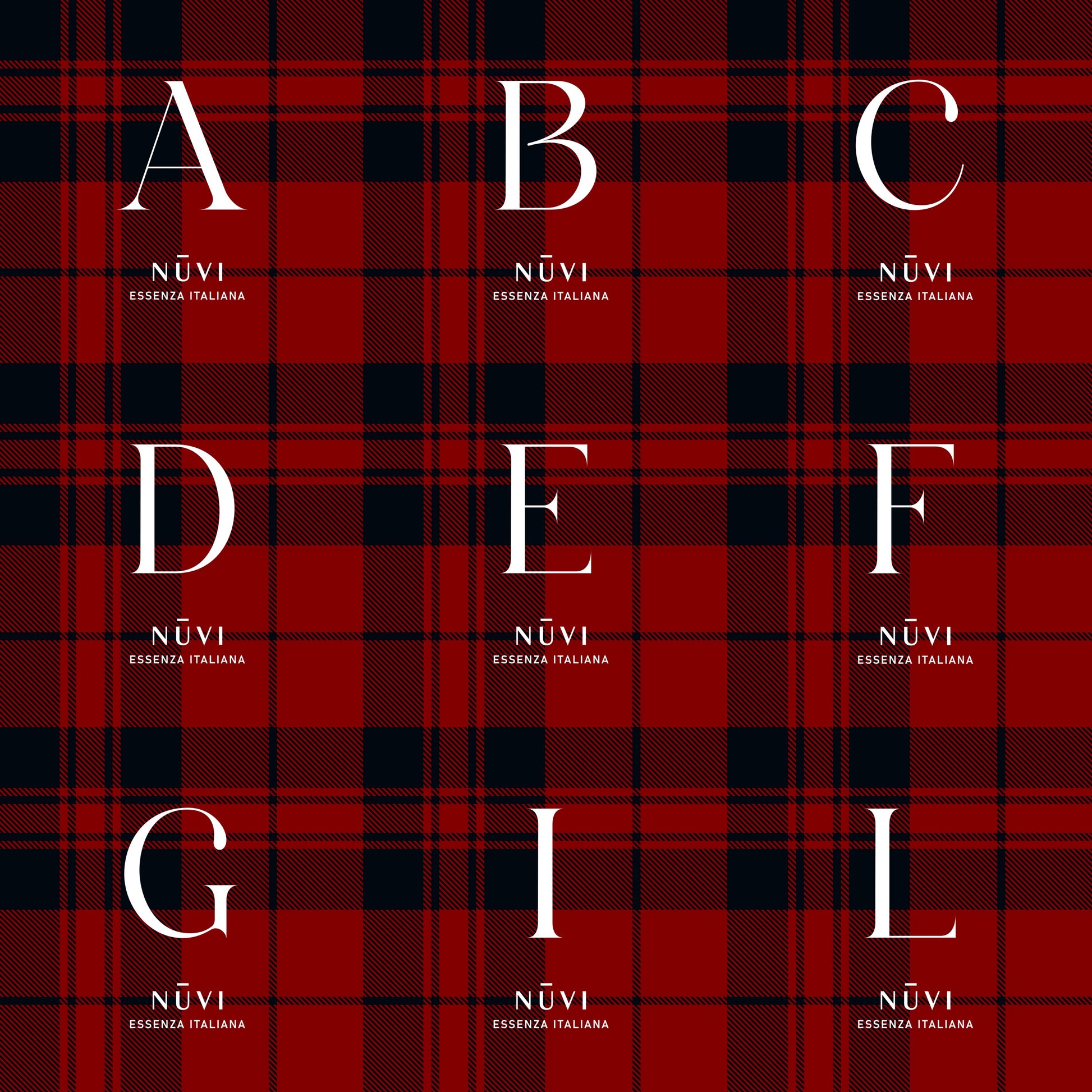 Candela profumata NUVI – Tartan Rosso | Personalizzabile con lettera